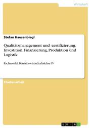 Qualitätsmanagement und -zertifizierung. Investition, Finanzierung, Produktion und Logistik
